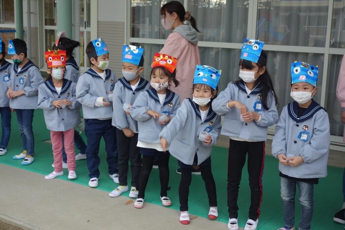 園の様子 2021年02月02日 R2年度 節分 今日2月2日は季節の変わり目「節分」です。 節分にちなんで、みんなで豆まきをしました! 悪い鬼を追い払うために、大きな声を出して豆をまきました! 鬼はいなくなったかな?