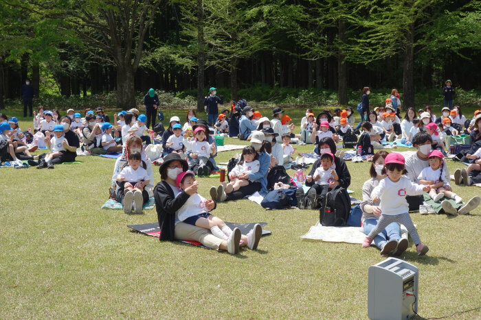 園の様子 2023年04月28日 春の遠足~四季の里~ 四季の里へ親子で遠足に行ってきました! 良く晴れた空の下、みんなで写真を撮ったり、リズムを踊ったり、 シートを敷いてお弁当を食べたり…。 楽しいひとときを過ごしました♪ 親子で「バスにのって」をしました! みんなで楽しくランチタイム!